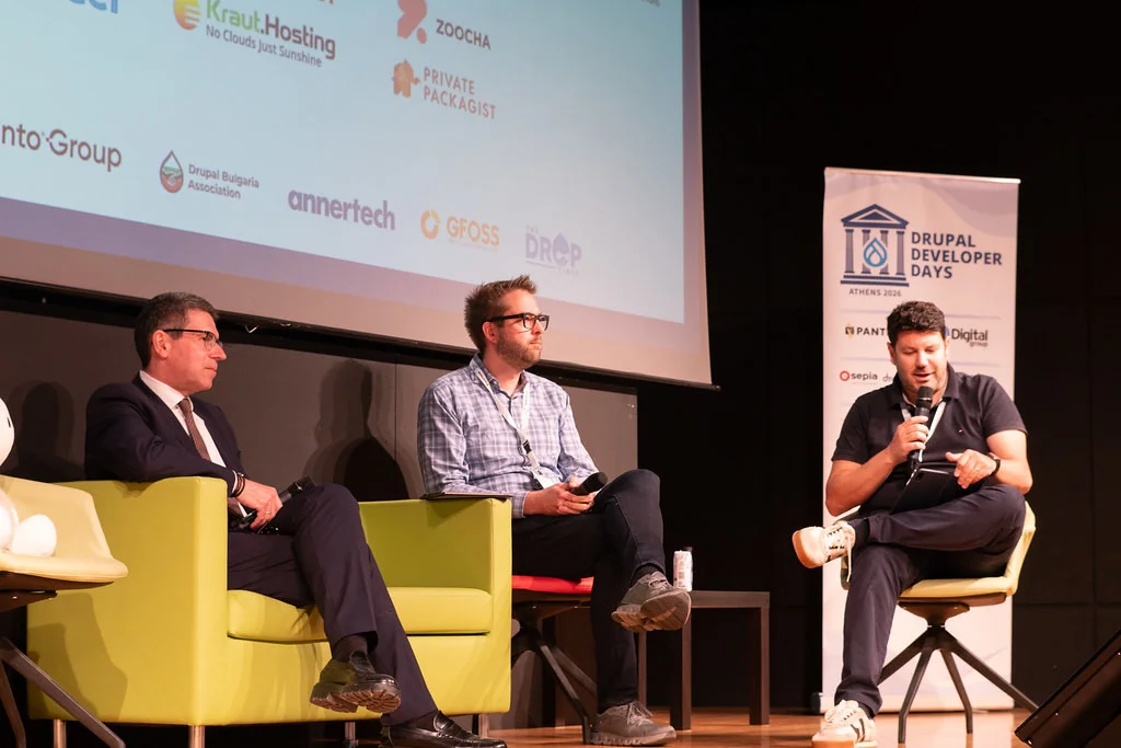 Wir nehmen dieses Jahr an den DevDays 2026 in Athen teil und sind begeistert von den Eindrücken, die wir bisher gesammelt haben. Wir freuen uns besonders, dass Dries, der Gründer von Drupal, zum ersten Mal an dieser relativ kleinen Veranstaltung teilnimmt. Seine Anwesenheit verleiht den DevDays eine besondere Bedeutung, da er normalerweise auf viel größeren Bühnen zu sehen ist.